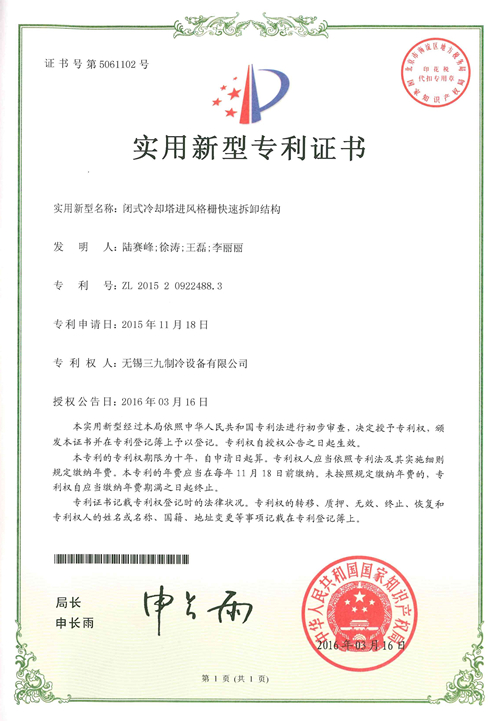 閉式冷卻塔冷卻器的新型進風窗結構
